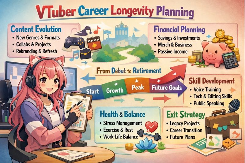 This guide shows you exactly how to plan long-term VTuber career longevity — covering branding, content strategy, monetization, mental health, skill stacking, and future-proofing — so your career survives trends, platform changes, and market saturation.